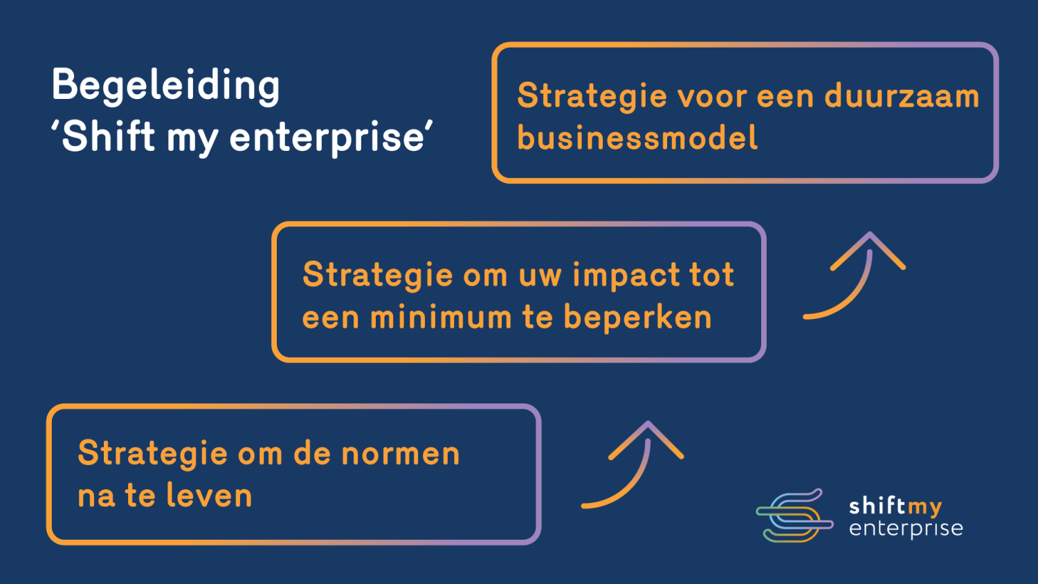 2. Vervolgens kan uw onderneming de eerste concrete stappen van haar transitie zettendoor de interne praktijken te laten evolueren en ecologisch gedrag te implementeren binnen de onderneming. Het gaat dan bijvoorbeeld om: